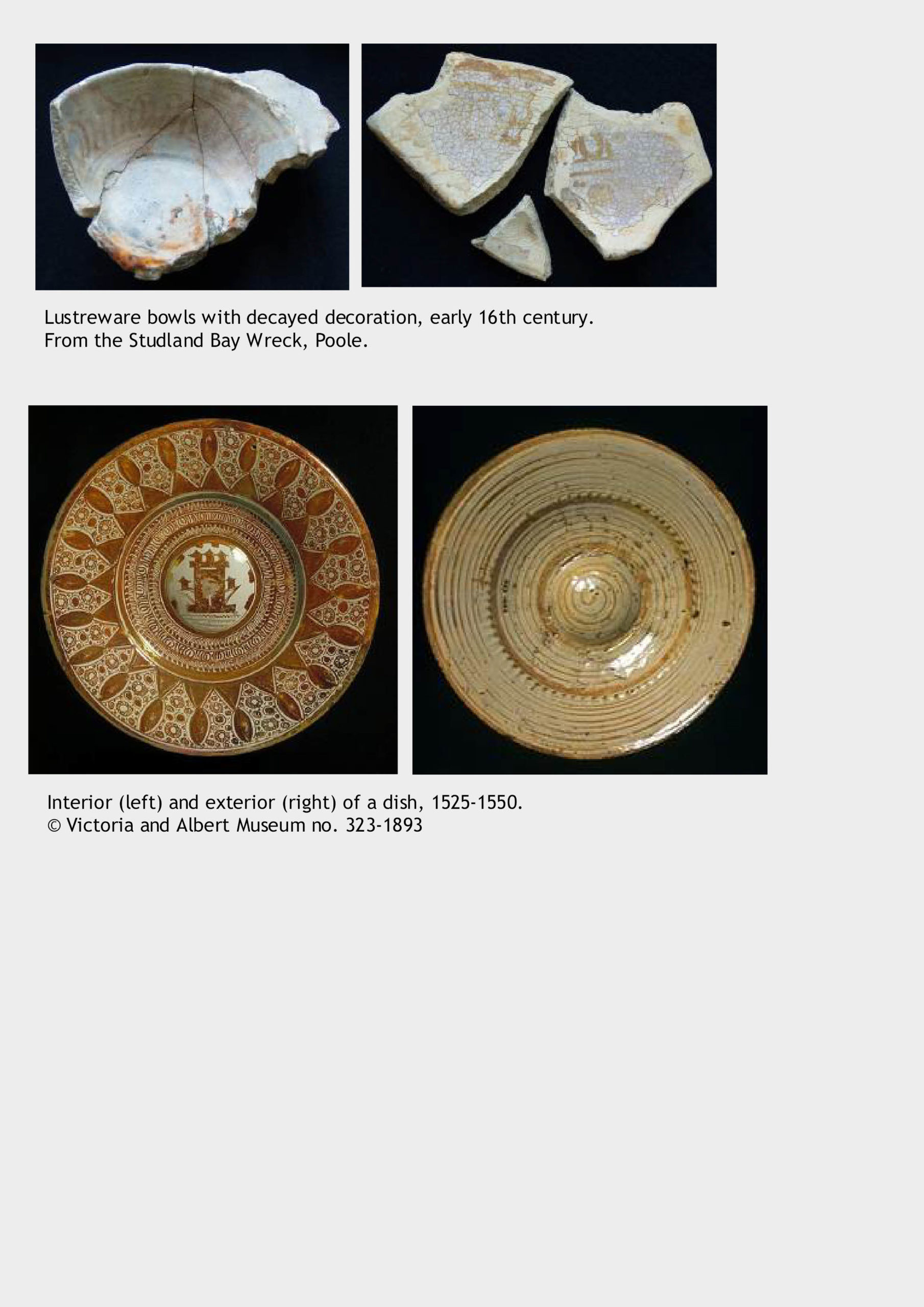 Little investigated as yet, Seville lustreware is easy to misidentify as Late Valencia Lustreware.